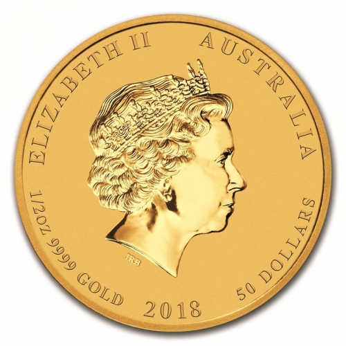 На аверсе изображен профиль королевы Елизаветы II. Сверху надписи: «ELIZABETH II» (Елизавета II) и «AUSTRALIA» (Австралия). Также внизу указаны вес (1/2 oz – 1/2 унции), проба (9999), название металла (Au - золото), год (2018) и номинал монеты – «50 DOLLARS» - 50 австралийских долларов.