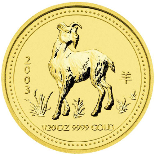 Редкая золотая монета из первой серии "Лунный календарь" - год Козы. Выпущена в 2003 году. Ограниченный тираж, редкая мо
